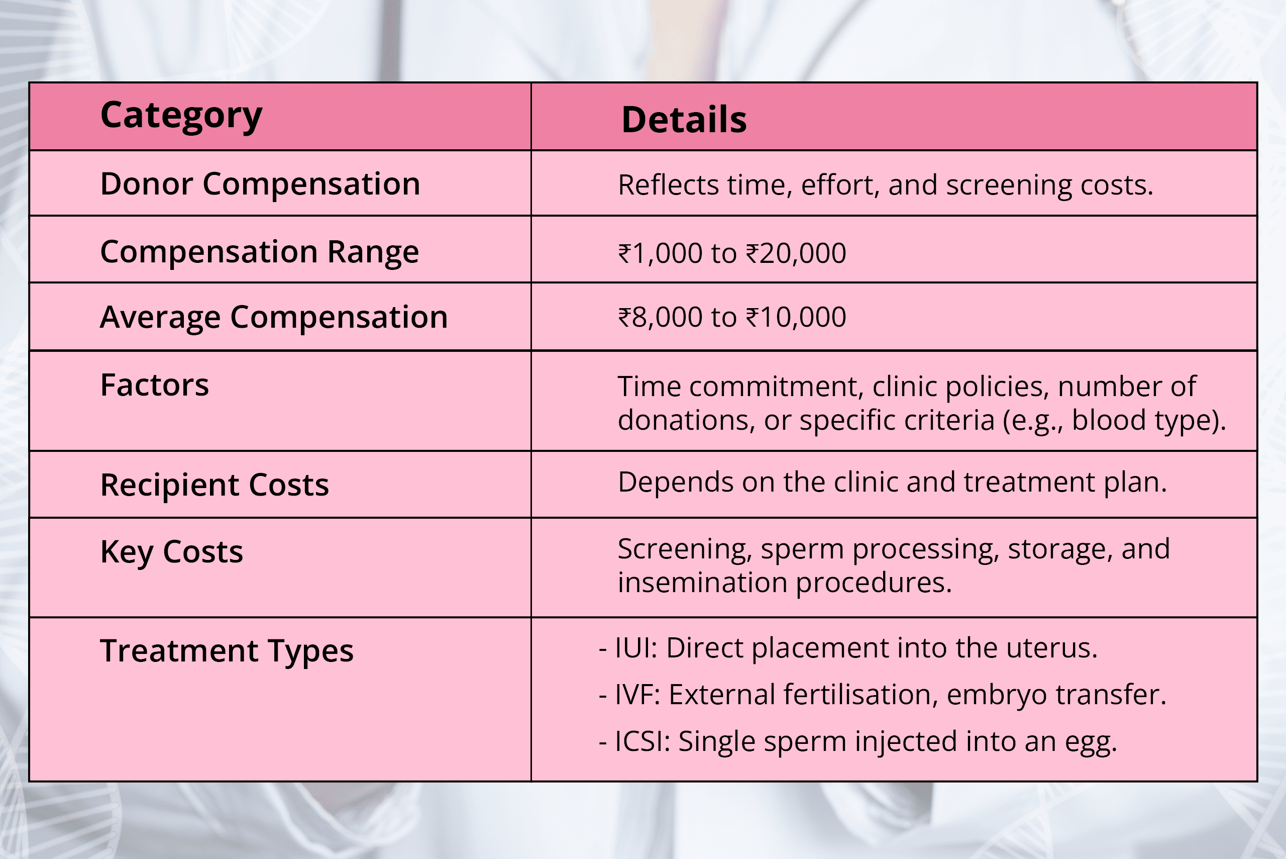 - Average Compensation For Sperm Donors: ₹8,000 to ₹10,000